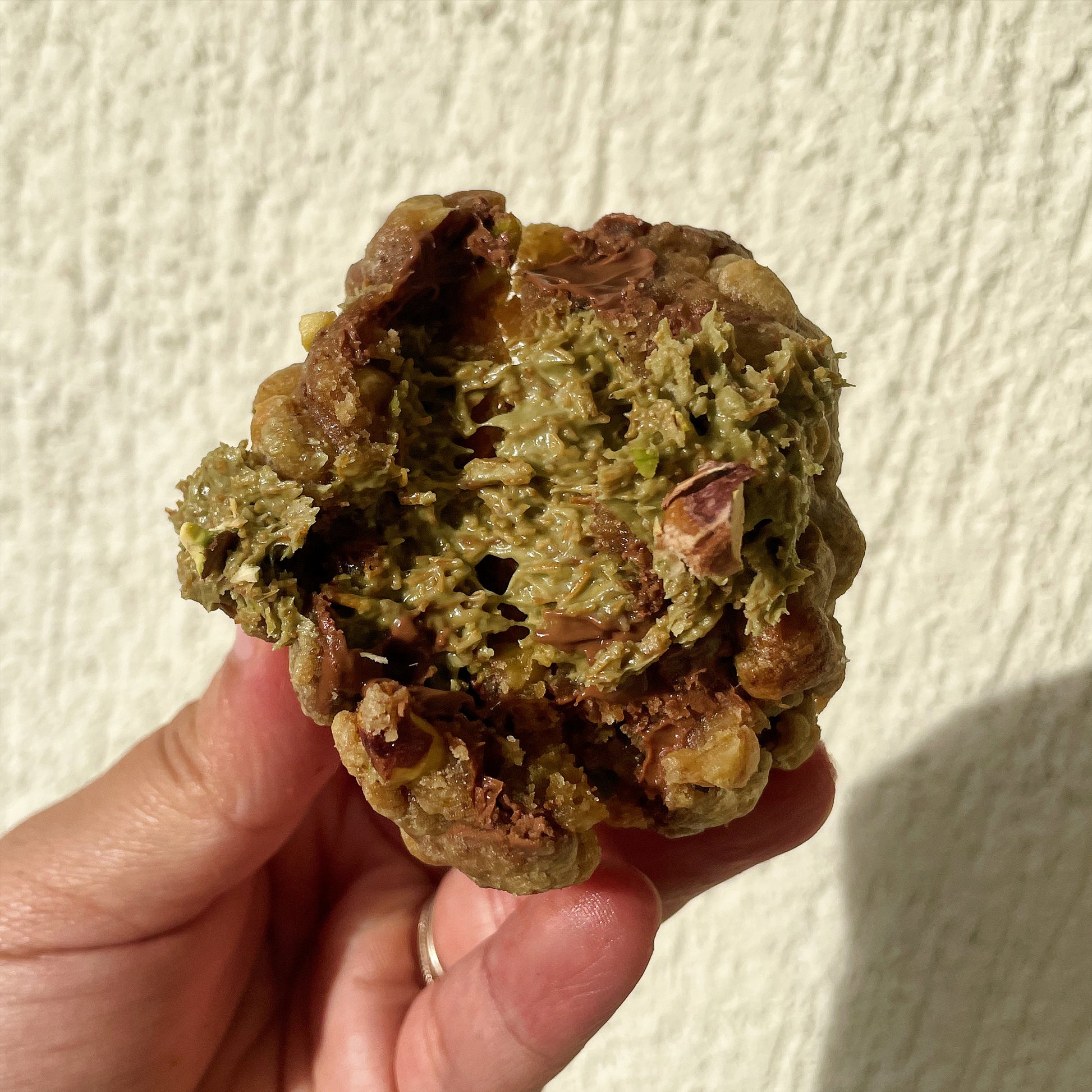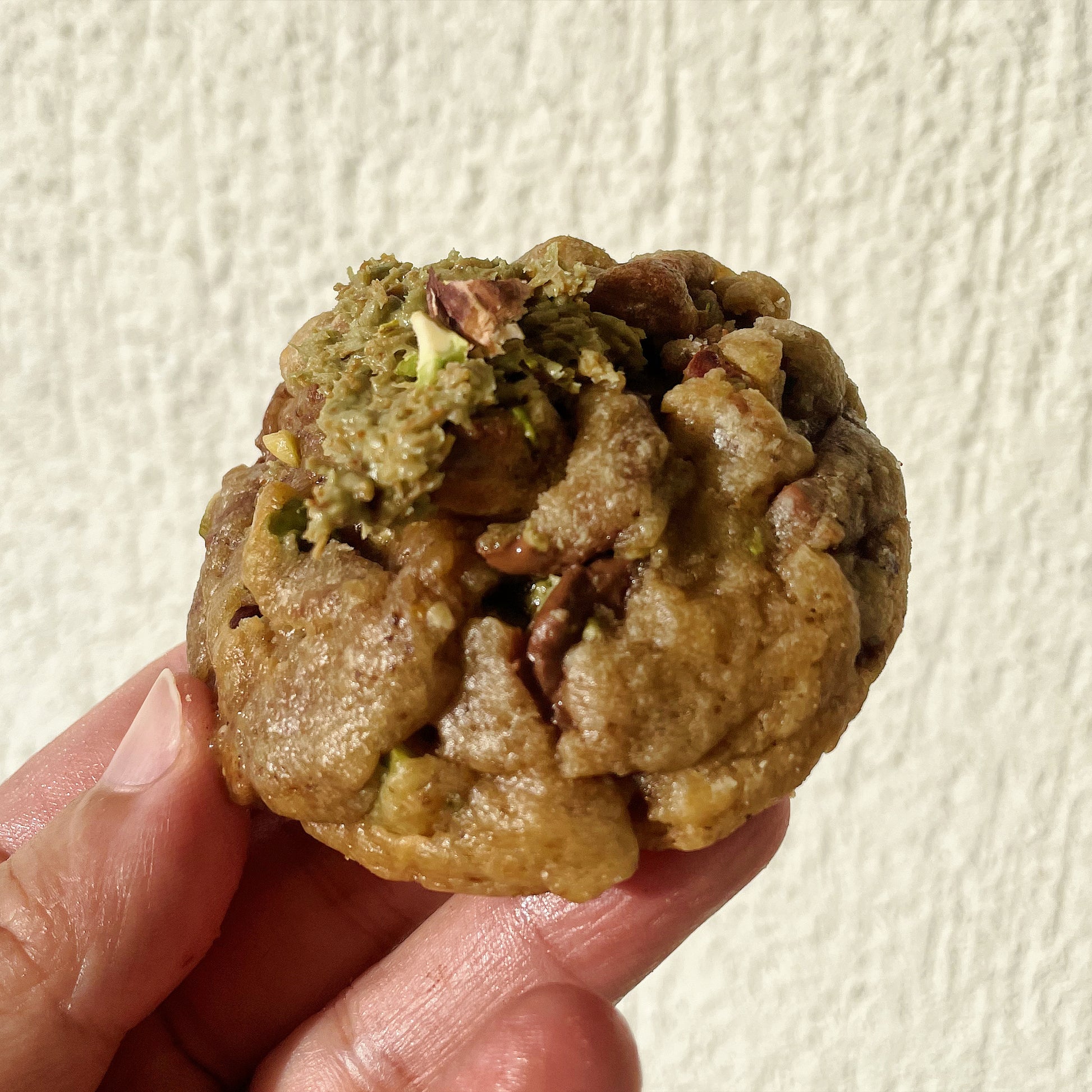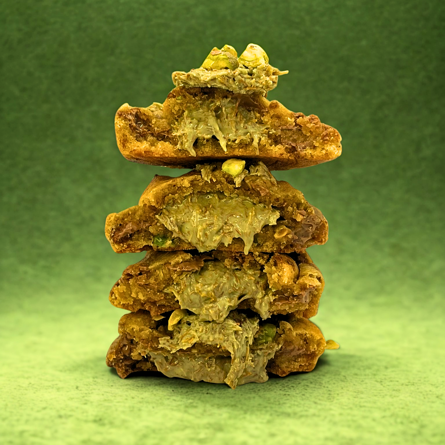 Le cookie le plus extra de ta vie : base choco au lait fondante, éclats de pistache croquants et cœuf signature façon Dubaï , un mélange décadent de kunafa croustillante et de crème pistache onctueuse. Un cookie ? Non. Une expérience dorée.
